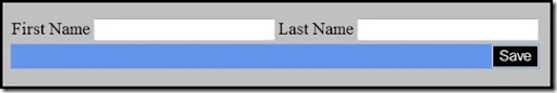 <table> <tr> <td><asp:Label ID="lblFirstName" runat="server" Text="Name" /></td> <td><asp:TextBox ID="txtFirstName" runat="server"/></td> <td><asp:Label ID="lblLastName" runat="server" Text="Last Name" /></td> <td><asp:TextBox ID="txtLastName" runat="server"></td> </tr> <tr class="ButtonRow"> <td colspan="4"><asp:Button ID="btnSave" runat="server" CssClass="Button" Text="Save" /></td> </tr> </table>