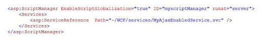 Last thing to do, on our ScriptManager we add a reference to our new service and the path to it.