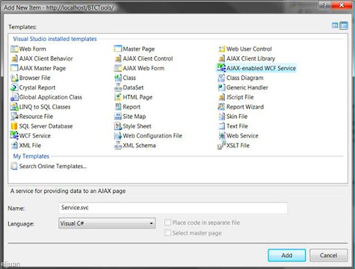 First thing to do of course, is add a new Ajax enabled WCF Service to your solution.