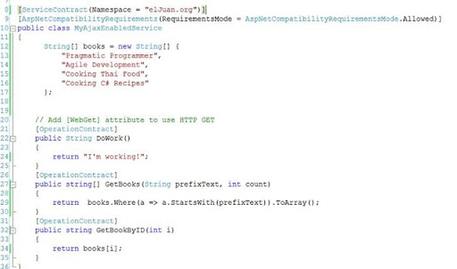 Then I went into MyAjaxEnabledService class and added to get my books names once the user entered the book names.