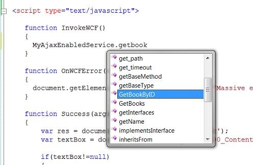 Note that as I type the name of my WCF service, VS's intellisense will show me the available public contracts, in this case GetBookByID()