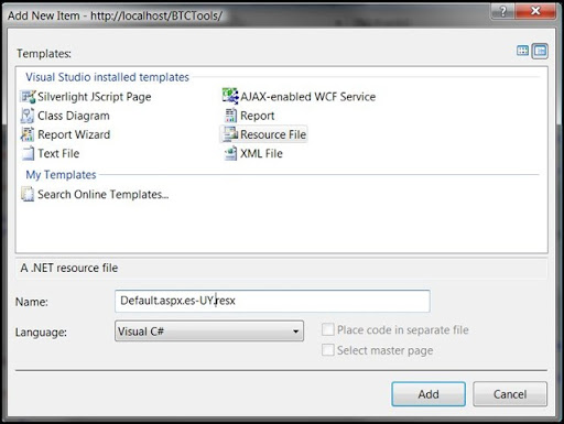 Just a simple form with some dates, numbers and a calendar what we hope we can localise and so the right names and formatting appear for the right culture setting. For the form labels I used resource files just like in my previous post. I have three resource files, one for english, one for spanish and one for mandarin.