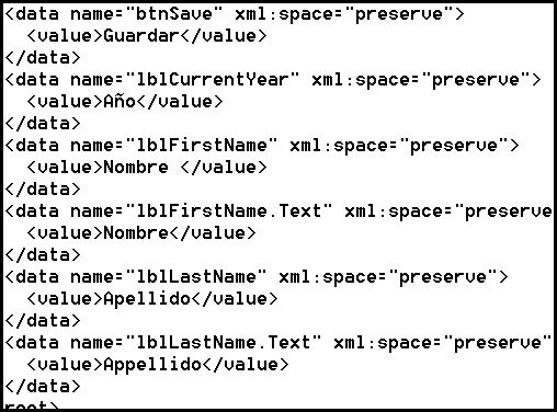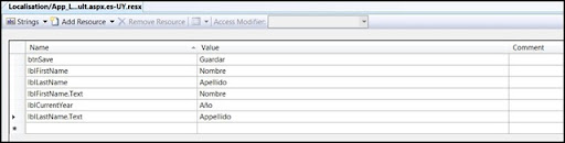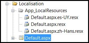 Just a simple form with some dates, numbers and a calendar what we hope we can localise and so the right names and formatting appear for the right culture setting. For the form labels I used resource files just like in my previous post. I have three resource files, one for english, one for spanish and one for mandarin.